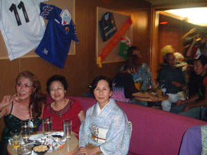 2日目の朝食のあと、山川夫人が追い駆けてきて、茶髪でド派手な若作りの女性を紹介してくれた。72才というがスタイル抜群で唄って踊るのが大好き,98 日の船旅だから98枚ドレスを持ってきたというお洒落です 。