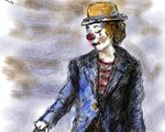 アニー横サイズ黒 道化は皆そうですが、アニーも芸達者です。イタリア映画の{ジェルソミーナ」(道)では、アニーがジュリエッタ.マシーナに化粧を教えたと云われています。 |